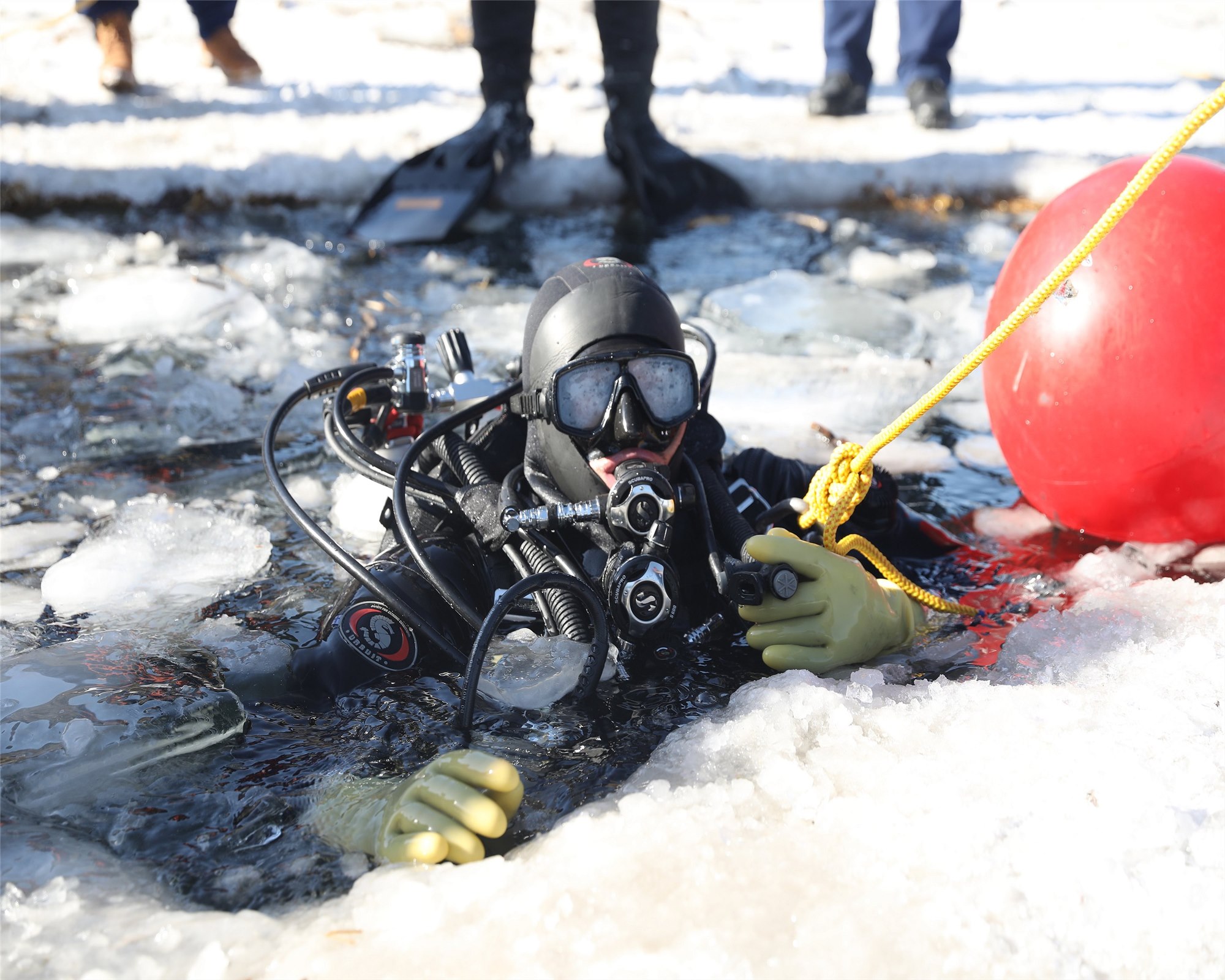 “忆党恩 颂祖国”消防主题摄影展优秀奖作品《冰潜》,摄影:饶继猛...